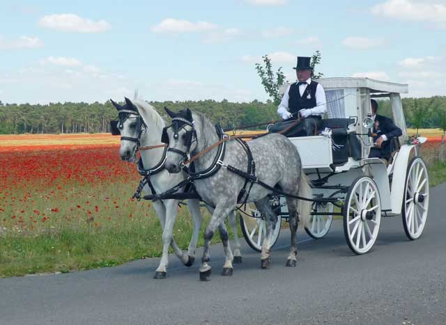 Darino und Nadura, unsere Braunen, vor der weißen Kutsche