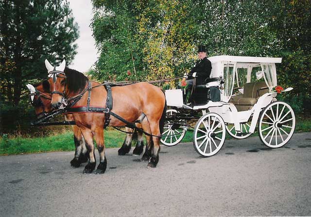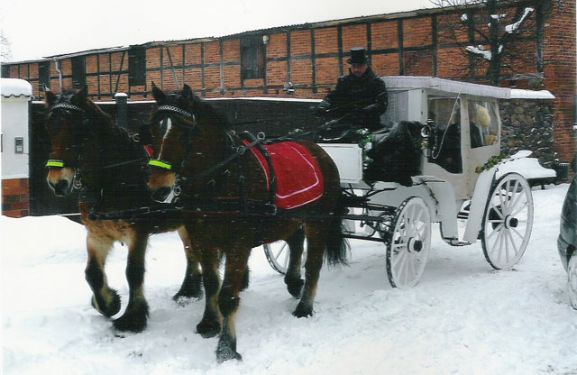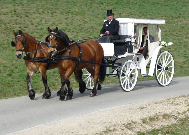 Darino und Nadura, unsere Braunen, vor der weißen Kutsche